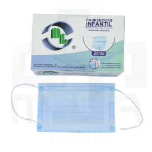 Cubrebocas Infantil Color Azul – Marca DL – Caja con 50 Piezas