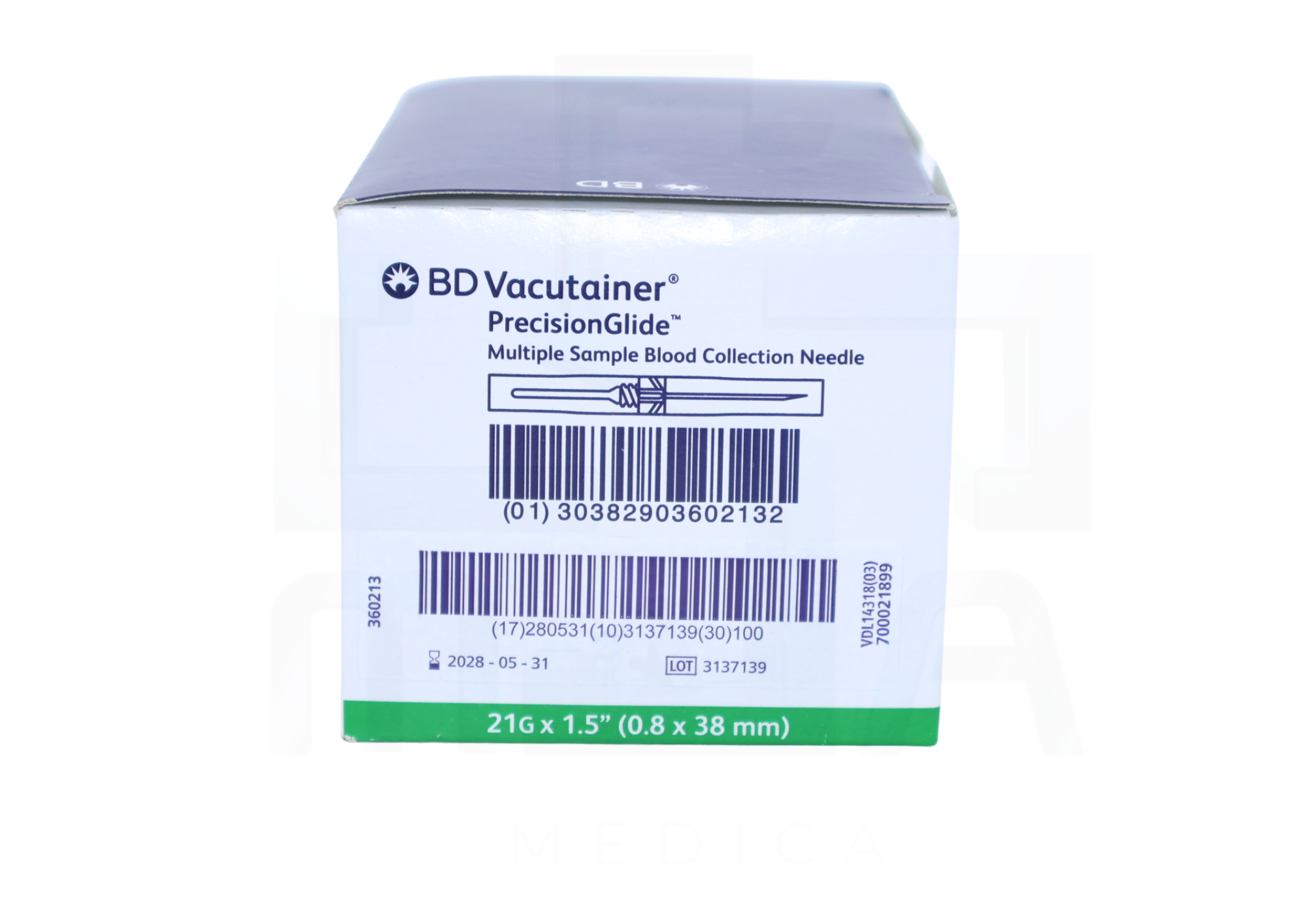 La aguja BD Vacutainer® verde (0.8 mm x 38 mm / 21G) está diseñada específicamente para la punción venosa segura y eficiente durante la toma de muestras sanguíneas. Fabricada con acero inoxidable de grado médico, garantiza una penetración precisa, suave y de mínimo trauma para el paciente.