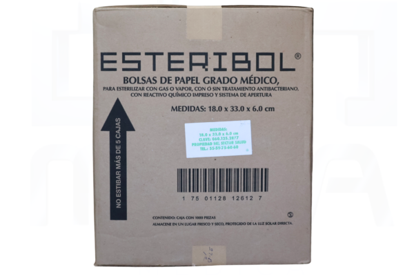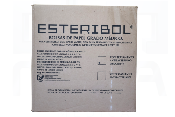 Bolsa para esterilización por gas (EO) o vapor (autoclave), fabricada en papel grado médico. Disponible con o sin tratamiento antibacteriano, cuenta con reactivo químico impreso que indica el proceso de esterilización y sistema de apertura fácil.